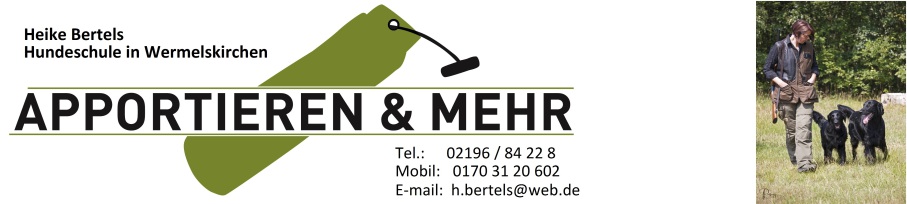 Hundeschule Heike Bertels Lortzingstr. 15a 42929 Wermelskirchen Telefon: 02196 / 84228